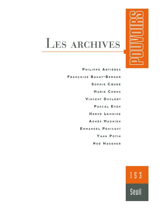 Une histoire des archives : souveraineté État et nation YANN POTIN Les archives butins de guerre et souveraineté SOPHIE COURÉ Les pouvoirs face aux archives VINCENT DUCLERT Faut-il réviser la loi de 1978 ? Le droit de l'accès aux archives MARIE CORNU Un enjeu de pouvoir : quelles structures ad