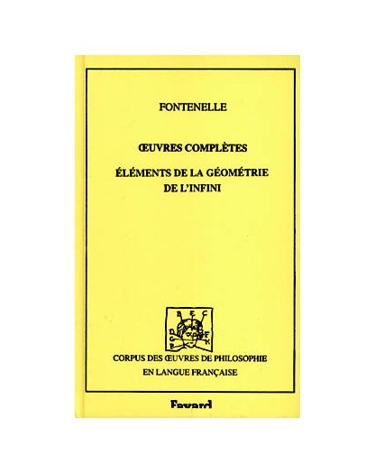 des Oeuvres complètes de Fontenelle publiées dans le Corpus.Ouvrage majeur d'un des grands écrivains et philosophes français de la fin du XVIIe et du début du XVIIIe siecle consacré à la question : l'infini existe-t-il ?