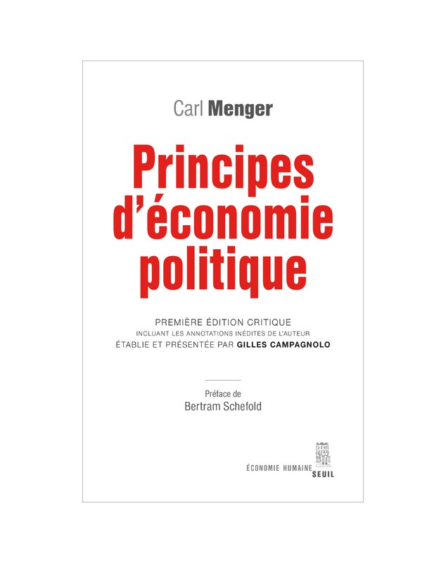 EAN : 9782021414400 - Auteur : Carl Menger - Editeur : SEUIL - Nb de pages : 816 - ...