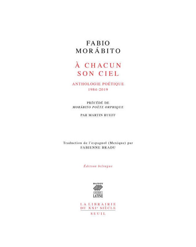 "À chacun son ciel (précédé de ""Morabito poète orphique"" par Martin Rueff)"