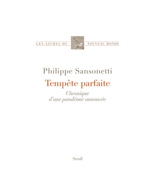 « Tempête parfaite » « The perfect storm » désigne une épidémie où tous les facteurs se conjuguent pour aboutir à un drame pandémique. De janvier à juin 2020 Philippe Sansonetti a tenu une chronique de la pandémie de Covid-19 : perception par la population et les médias réponse des au