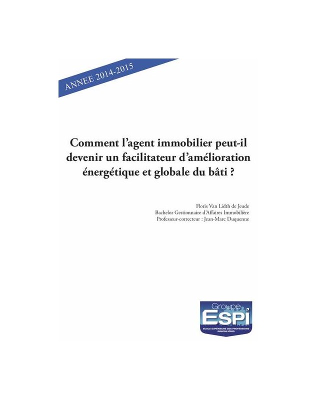 La collection "Mémoires de l'ESPI" a pour objectif de publier les travaux des étudiants de l'ESPI qui ont été remarqués par les professeurs afin de valoriser la formation qu'ils ont suivie et de les mettre à disposition des professionnels qui le souhaitent. L'ESPI est un établissement d'ense