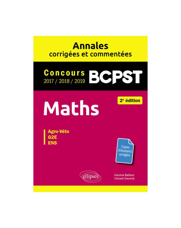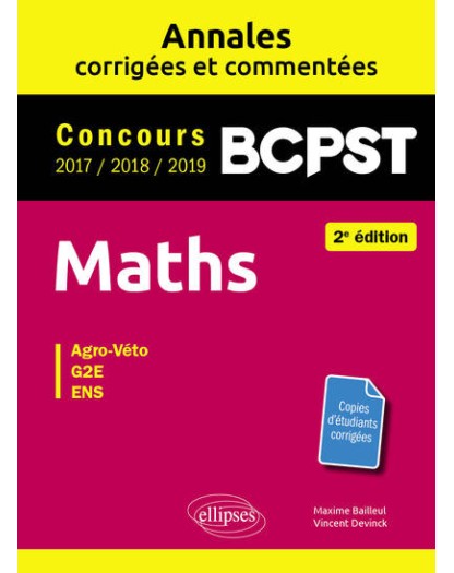 Maths BCPST - Annales corrigées et commentées 2017-2018-2019 - Concours Agro-Veto, G2E, ENS - 2e édition