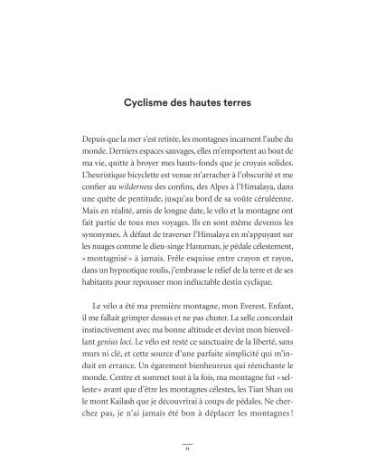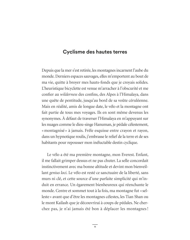 « Alpes Andes Rocheuses Caucase Pamirs Himalaya j'ai toujours été un grimpeur à deux roues. Pédaler des milliers de kilomètres pour atteindre un massif ne m'effraie pas. Le vélo et la montagne ont fait partie de tous mes voyages comme si ces deux