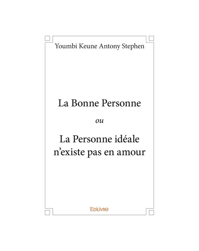 EAN : 9782414190140 - Auteur : Youmbi Keune Antony Stephen - Editeur : EDILIVRE - Nb de pages : 162 - « Il faut cesser de croire et de penser que la “bonne personne” ou la personne “idéale” e...
