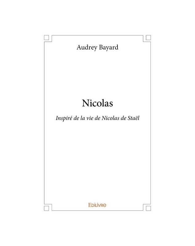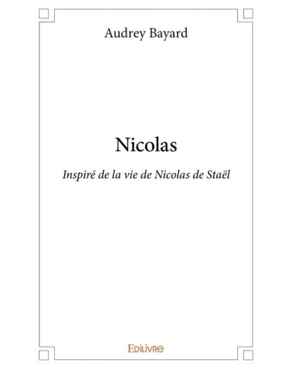 EAN : 9782414329496 - Auteur : Audrey Bayard - Editeur : EDILIVRE - Nb de pages : 44 - Nicolas est un court récit inspiré de la vie de Nicolas de Staël. Ce peintre majeur du XXe sièc...