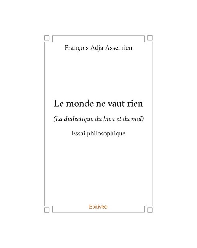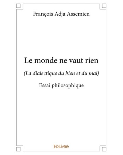 EAN : 9782414370887 - Auteur : François Adja Assemien - Editeur : EDILIVRE - Nb de pages : 42 - " Ce livre est mon testament de l'Histoire ma critique iconoclaste de toutes les valeurs cardinales ...