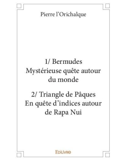 EAN : 9782414372805 - Auteur : Pierre l\'Orichalque - Editeur : EDILIVRE - Nb de pages : 372 - Bermudes... et Triangle de Pâques... sont deux histoires se rapportant à deux fameux triangles : c...