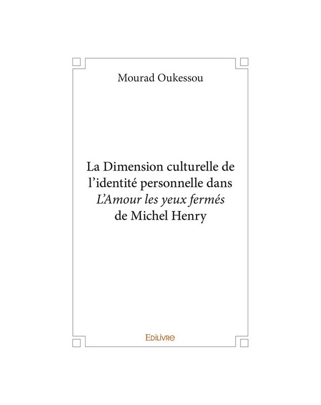 EAN : 9782414382316 - Auteur : Mourad Oukessou - Editeur : EDILIVRE - Nb de pages : 42 - Le roman L'Amour les yeux fermés de Michel Henry aborde la notion de la culture et celle de la comm...