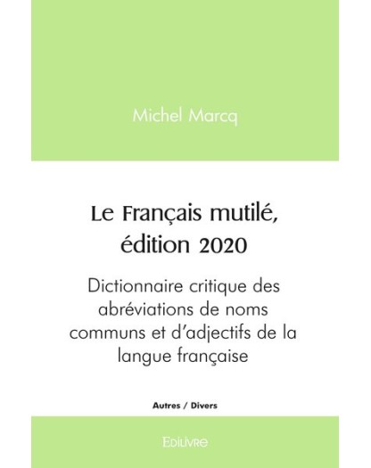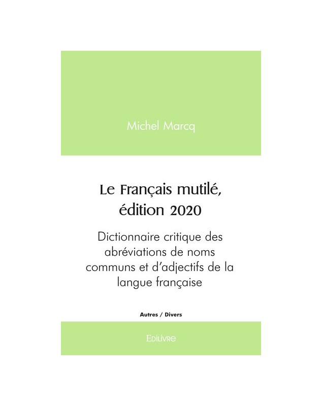 EAN : 9782414389384 - Auteur : Michel Marcq - Editeur : EDILIVRE - Nb de pages : 162 - Ce petit livre est un dictionnaire des abréviations et apocopes de noms communs et d'adjectifs de l...