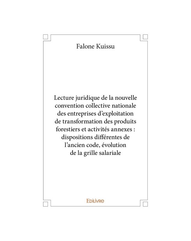 EAN : 9782414400409 - Auteur : Falone Kuissu - Editeur : EDILIVRE - Nb de pages : 52 - Cet ouvrage est une lecture juridique de la nouvelle convention collective nationale des entreprises...