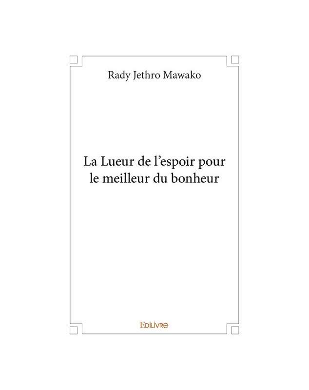 EAN : 9782414403394 - Auteur : Rady Jethro Mawako - Editeur : EDILIVRE - Nb de pages : 202 - La Lueur de l'espoir pour le meilleur du bonheur est une oeuvre poétique révolutionnaire traitant ...