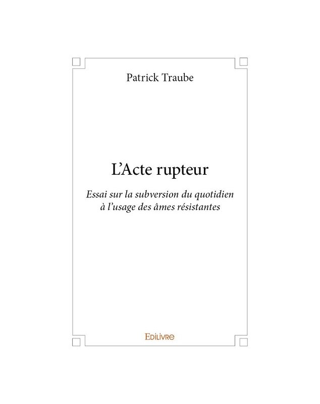 EAN : 9782414405480 - Auteur : Patrick Traube - Editeur : EDILIVRE - Nb de pages : 66 - Prendre à revers la force de l'habitude pour en dévoiler la pesanteur. Déranger l'ordre des chos...