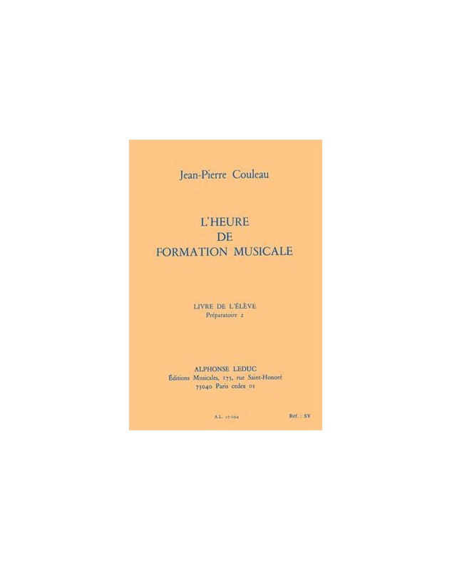 JEAN-PIERRE COULEAU: L'HEURE DE FORMATION MUSICALE - PREPARATOIRE 2/LIVRE DE L'ELEVE
