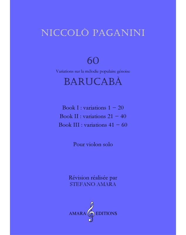 EAN : 9790707113400 - Auteur : Amara - Editeur : AMARA EDITIONS - Nb de pages : 0 - Les variations sur la mélodie populaire génoise Barucabà ont été composées par Paganini en 183...