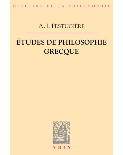 André Jean Festugière (1898-1982) a été directeur d’études à l’École pratique des Hautes Études de 1943 à 1968. C’est pendant cette longue période qu’il a donné une formidable impulsion à Paris aux études consacrées à l’Antiquité tardiveNaturellement c’est aussi par ses publications nombreuses que le Père Festugière a contribué au rayonnement international de l’histoire de la philosophie à la fin du paganisme. On peut recenser 73 livres et 277 articles de revues et comptes rendus de livres. À la fin de sa vie il a réuni les plus importants de ses articles dispersés en trois volumes. En 1971 ce furent les Études de philosophie grecque en 1972 les Études de religion grecque et hellénistique et en 1975 les Études d’histoire et de philologie.Voici la réimpression des Études de philosophie grecque qu’il a divisées en trois parties : d’abord les problèmes généraux puis les problèmes de détail enfin les Procliana. Les problèmes de détail traitent ou bien de notions (éternité endurance péché) ou bien de questions particulières posées par les écrits de Platon d’Aristote de Théophraste de Galien d’Aristide Quintilien ou d’expressions obscures dont le sens est dévoilé tandis que les problèmes généraux s’attaquent au problème du mal à celui du plaisir aux rapports des philosophes grecs avec les sages orientaux et l’Inde au système d’Aristote et aux genres de vie active et contemplative dans le monde gréco-romain.Par la lecture de ces articles le Père Festugière continue et continuera longtemps encore à enseigner ses lecteurs.
