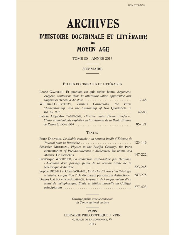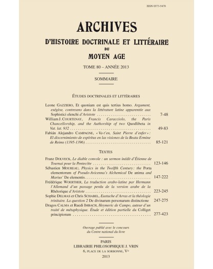 Archives d'Histoire littéraire et doctrinale du Moyen-Âge LXXX – 2013