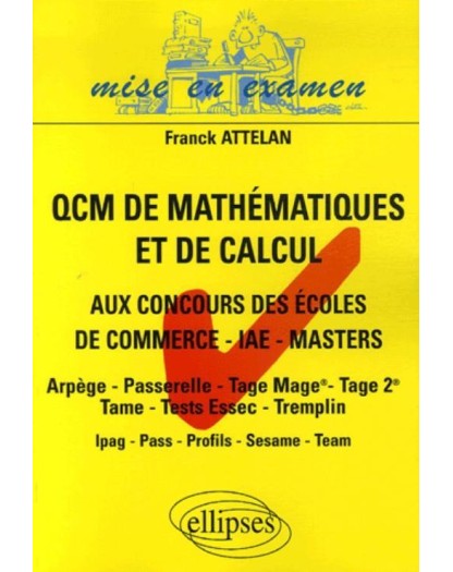 Cet ouvrage s'adresse à des étudiants de Terminale à Bac+6 qui souhaitent poursuivre leur cursus au sein d'une école de commerce d'un Master (Masters et Mastères spécialisés) ou d'un IAE. Les QCM de mathématiques et de calcul fait suite aux Épreuves de logique et de mathématiques aux conc