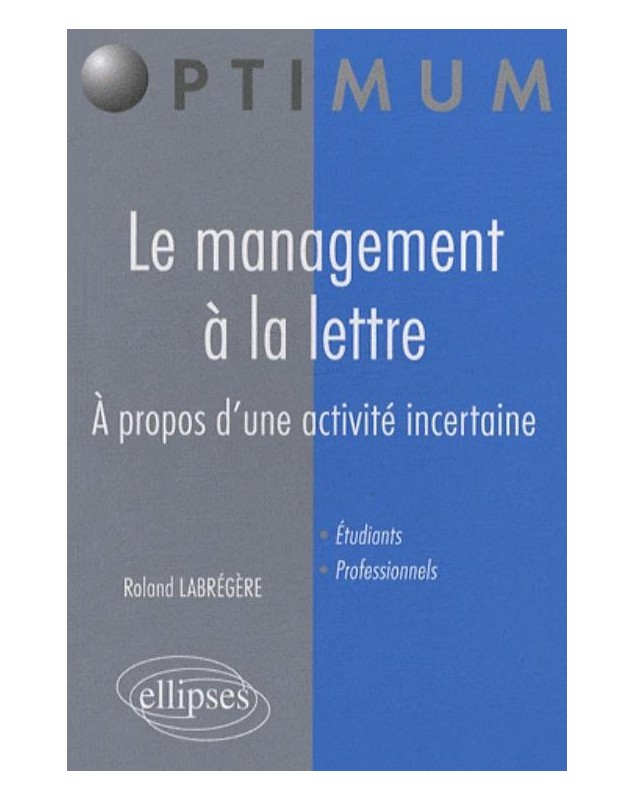 EAN : 9782729836108 - Auteur : Labrégère - Editeur : ELLIPSES - Nb de pages : 0 - Qu’est-ce que le management ? Quels savoirs fondamentaux est-il nécessaire de réunir pour agir...