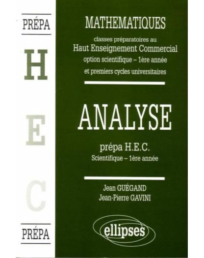 volume 2. Analyse (Première année) Ces ouvrages ont été conçus pour répondre aux souhaits de nombreux étudiants de classes préparatoires économique et commerciale d'avoir des livres de cours adaptés à leur programme. Les différents chapitres sont abondamment illustrés d'exercices ce