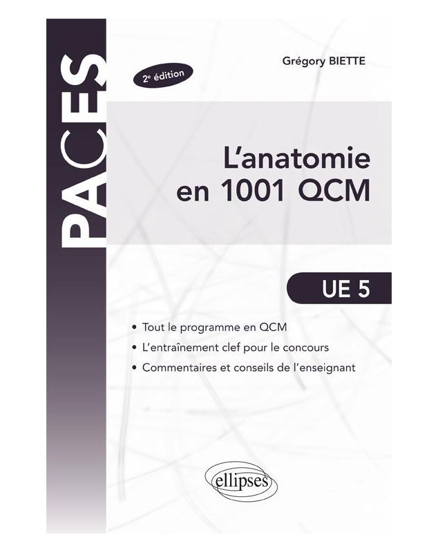 QCM et QROC (questions à réponse courtes) tels qu’ils tombent le jour du concours de fin de première année corrigés et commentés sur tout le programme d’anatomie. Classement par catégorie de questions. Ce livre est destiné aux étudiants préparant le concours de première année des