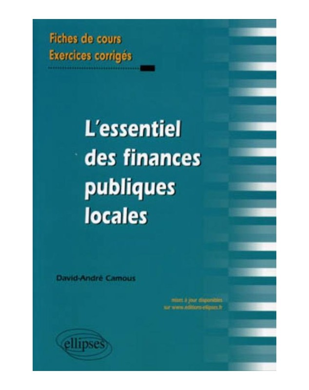 EAN : 9782729861780 - Auteur : Camous - Editeur : ELLIPSES - Nb de pages : 0 - Cet ouvrage propose en 16 fiches de s’initier aux finances publiques locales et de vérifier imm...