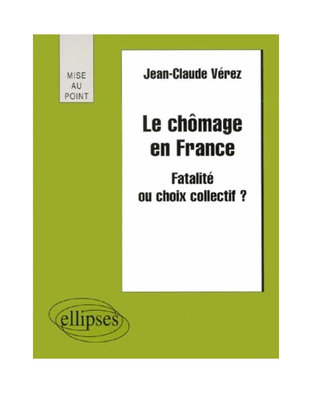 EAN : 9782729869854 - Auteur : Vérez - Editeur : ELLIPSES - Nb de pages : 0 - L'objectif de cette Mise au point est d'analyser le chômage en France à partir des comportements...
