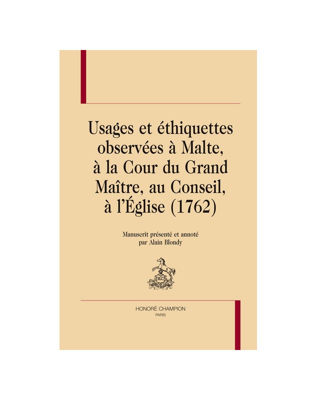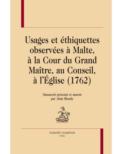 Usages et éthiquettes observées à Malte, à la cour du Grand maître, au Conseil, à l'Église, 1762