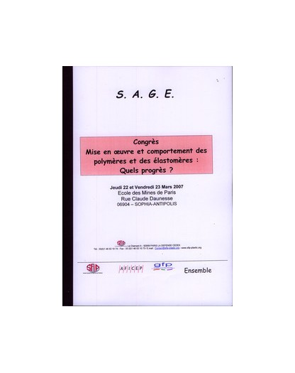 CONGRES. MISE EN OEUVRE ET COMPORTEMENT DES POLYMERES ET DES ELASTOMERES : QUELS PROGRES ? JEUDI 22