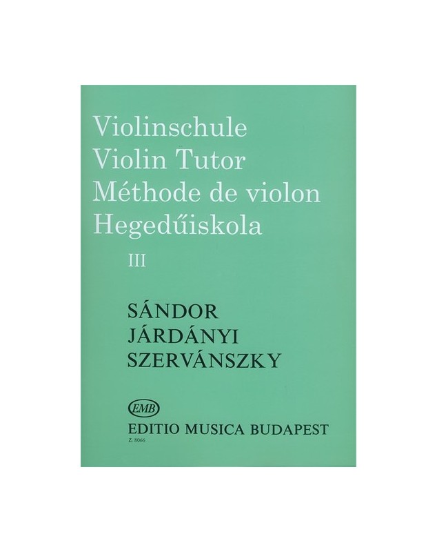 SANDOR, JARDANYI, SZERVANSKY : VIOLINSCHULE - VIOLIN TUTOR - METHODE DE VIOLON III