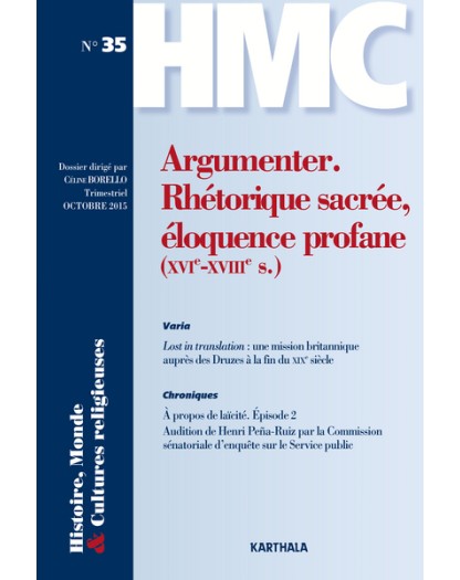 HISTOIRE, MONDE ET CULTURES RELIGIEUSES, N-35, ARGUMENTER, RHETORIQUE SACREE, ELOQUENCE PROFANE (XVI
