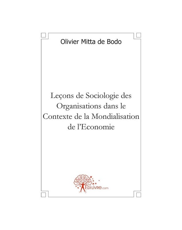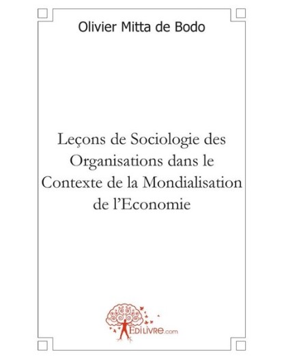 EAN : 9782812118999 - Auteur : Olivier Mitta de Bodo - Editeur : EDILIVRE - Nb de pages : 62 - Partant d'une définition générique et académique de la sociologie des organisations comme étant...