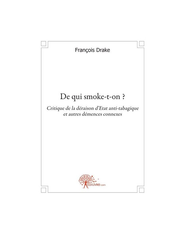 EAN : 9782812145391 - Auteur : François Drake - Editeur : EDILIVRE - Nb de pages : 406 - Dans son ouvrage François Drake s'attaque à un Etat tabacophobe sur la base du droit des hommes à...