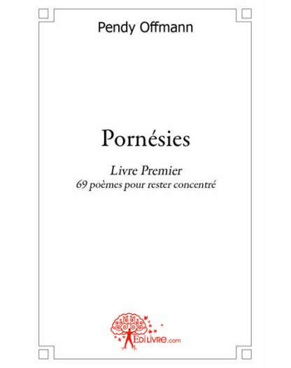 EAN : 9782812146213 - Auteur : Pendy Offmann - Editeur : EDILIVRE - Nb de pages : 74 - Pornésies Livre Premier est une sélection de poèmes écrits par l'auteur avec une technique part...