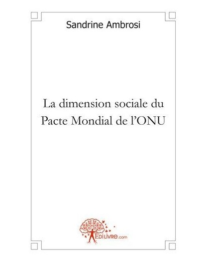 EAN : 9782812148200 - Auteur : Sandrine Ambrosi - Editeur : EDILIVRE - Nb de pages : 226 - Le Pacte Mondial de l'ONU participe à une meilleure cohésion sociale mais peut-il prétendre à co...
