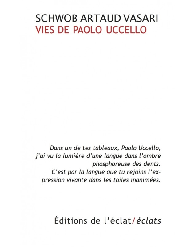 EAN : 9782841624553 - Auteur : Marcel SCHWOB - Editeur : ECLAT - Nb de pages : 0 - L'œuvre et la vie du peintre florentin Paolo Uccello (1397-1475) sont aussi intimement imbriquées ...