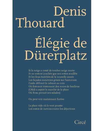 EAN : 9782842424657 - Auteur : Denis THOUARD - Editeur : CIRCE - Nb de pages : 0 - On ne peut qu'hésiter à qualifier d'élégie une suite de vers qui n'ont plus de rapport détermin...