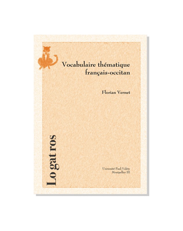 Le Vocabulaire thématique français-occitan est un essai de réponse aux besoins actuels de l’apprentissage de la langue occitane (parlers languedociens). Une aide pour la pratique du thème mais aussi un outil destiné à tous ceux qui désirent améliorer leur compétence communicative par une