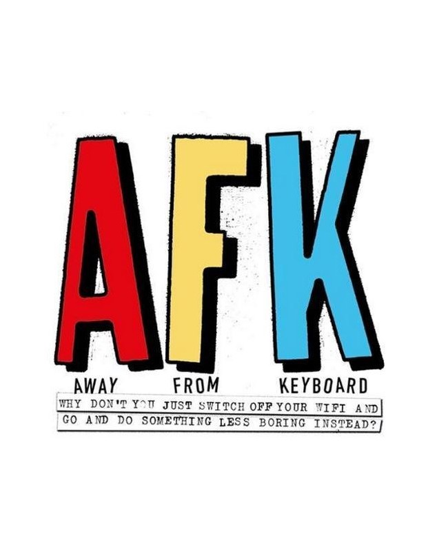 AFK. Away from the Keyboard /anglais