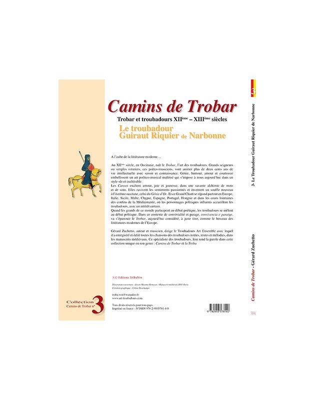 Présentation des 48 chansons (dont nous connaissons les mélodies dans le manuscrit BNF fr.22543) du dernier troubadour Guiraut Riquier de Narbonne (...1254-1294) dans leur intégralité du texte occitan avec traductions en français.Gérard Zuchetto a enregistré cette oeuvre en 5 CDs : Troubad